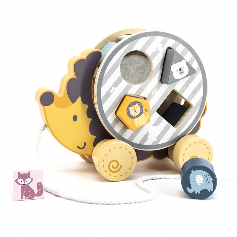 Jucăria Hedgehog din seria PolarB care se trage cu un sortator este soluția perfectă pentru învățarea mersului și învățarea formelor, care face parte din tendința Montessori . Copilul poate pune formele potrivite în interiorul ariciului, potrivindu-le cu găurile.