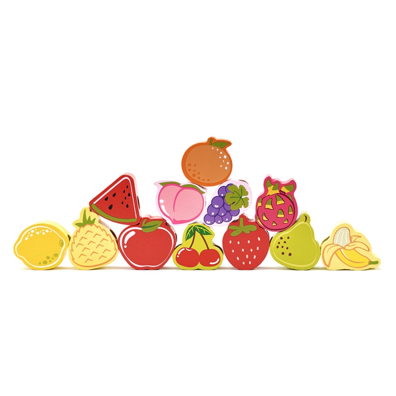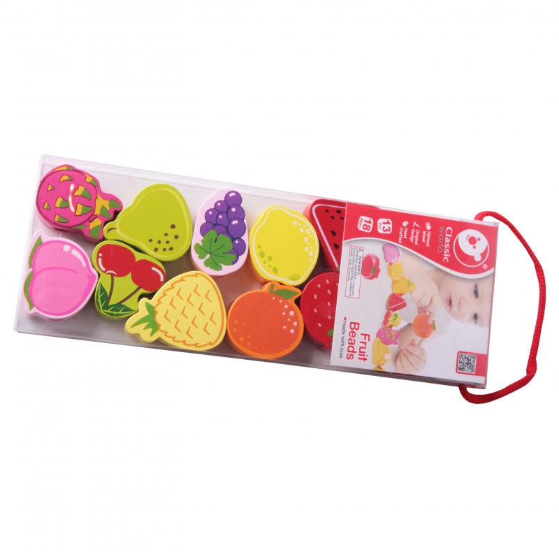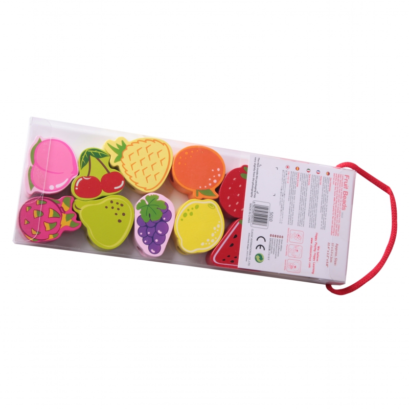 – setul include 12 mărgele din lemn în formă de fructe în culori frumoase