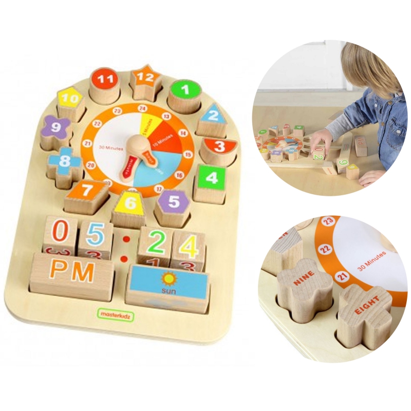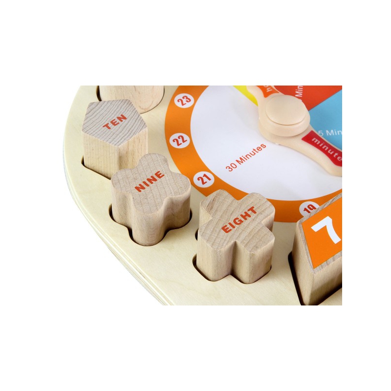Ceasul din lemn pentru învățarea orei și a vremii este o idee excelentă pentru învățare și distracție în același timp. Jucăria este folosită pentru a învăța să citești orele de la ceasurile clasice. Pe tablă se află un cadran de ceas cu mâini pe care copilul le poate roti liber. Educatorul poate dicta orele, iar sarcina copilului este de a regla acele în așa fel încât ceasul să arate ora dictată.