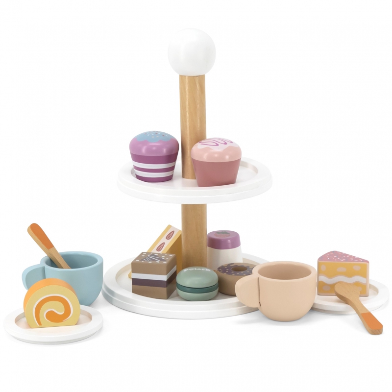 Prăjiturile, gogoșile și brioșele din lemn cu aspect delicios, vor fi un accesoriu minunat pentru orice bucătărie. Cel mic va putea juca jocuri de rol – va putea deveni un cofetar sau va putea pregăti petreceri pentru păpușile sau ursuleții săi de pluș. Un astfel de joc va avea un mare impact asupra dezvoltării copilului, a abilităților de gândire logică, a creativității, îi va stimula imaginația și îi va influența pozitiv inteligența emoțională. Produsul va fi perfect pentru cafeneaua copilului dumneavoastră.