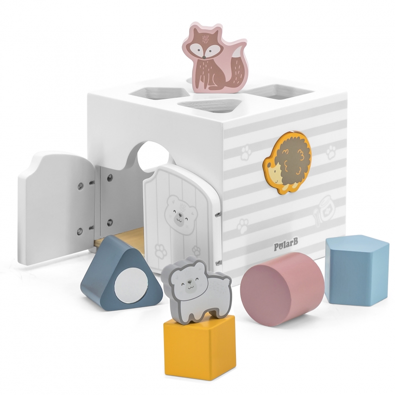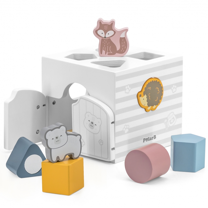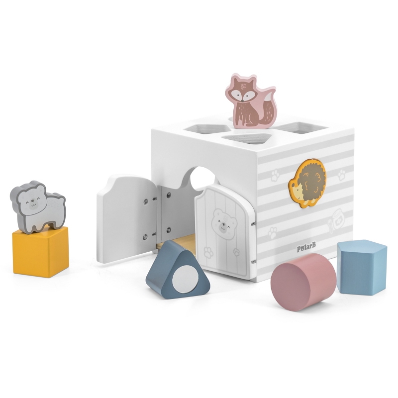 – copilul își va dezvolta coordonarea ochi-mână în timp ce potrivește blocurile în formă de triunghi, pentagon, pătrat sau cerc în găurile corespunzătoare